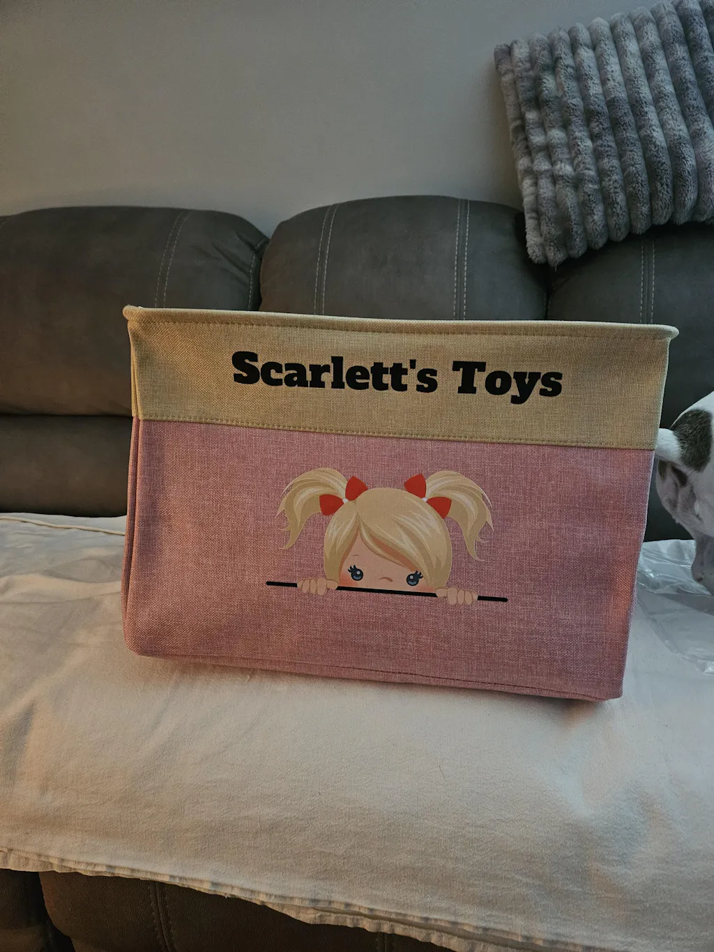 ✅ Unique Personalized Toy Basket and Organizer - Personalize this kid's storage organizer with your kid's name and a cute graphic. The box is collapsible and can be compactly stowed away when not in use.